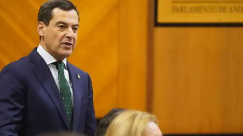 Juanma Moreno, presidente de la Junta de Andalucía, ha recriminado en el Pleno del Parlamento a los gestores del acuerdo de gobierno de PSOE y Sumar sosteniendo que "no recuerdo a un PSOE andaluz tan sumiso a la estructura nacional de Ferraz liderada por Pedro Sánchez"