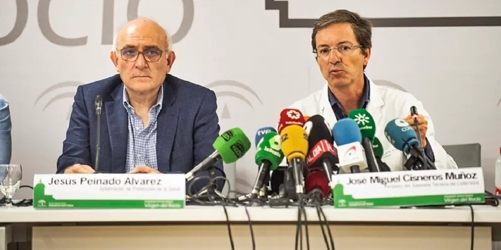 El día 16 de agosto, el siguiente a la activación de la alerta sanitaria y menos de 24 horas después de que ésta fuera decretada, el consejero Aguirre compareció ante los medios de comunicación en el Hospital Virgen del Rocío de Sevilla junto al subdirector de Protección de Salud, Jesús Peinado, para informar sobre el estado de las personas ingresadas y la evolución del brote.