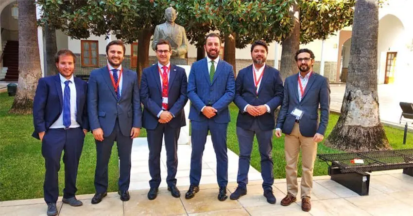 La nutrida representación de AJE Andalucía en su comparecencia parlamentaria, se ha compuesto del presidente, Melesio Peña, el vicepresidente, Ricardo Nandwani, el secretario de organización, Miguel Borrero, y los vocales, Félix Almagro y Javier Pineda.