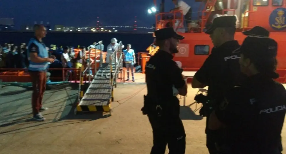 Ya por la noche, pasadas las 21.00 horas, llegaba a Puerto América la Salvamar Concepción Arenal con 56 personas, entre ellas diez menores de edad, rescatadas también en alta mar, tras partir desde el norte de Marruecos.