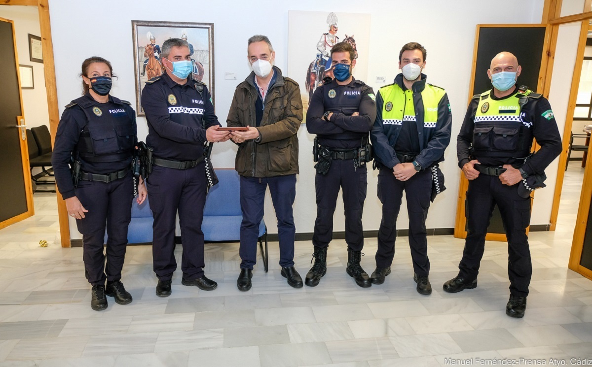 El hombre, ya recuperado, ha acudido dos meses después del suceso con sus familiares a la Jefatura de Policía Local de Cádiz para entregar a los agentes una placa en recuerdo de la actuación. Y agradecerles personalmente el poder salvar la vida.