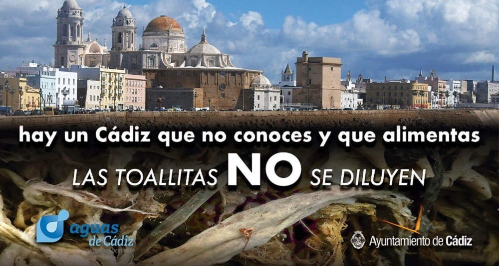 Bajo el lema: ‘Hay un Cádiz que no conoces y que alimentas. Las toallitas no se diluyen’, se pretende hacer ver a la población el peligro que supone hacer un mal uso del váter. La campaña de concienciación será difundida entre la población y formará parte también de un programa de divulgación medioambiental que está elaborando la empresa para llevar a centros educativos de la ciudad.
