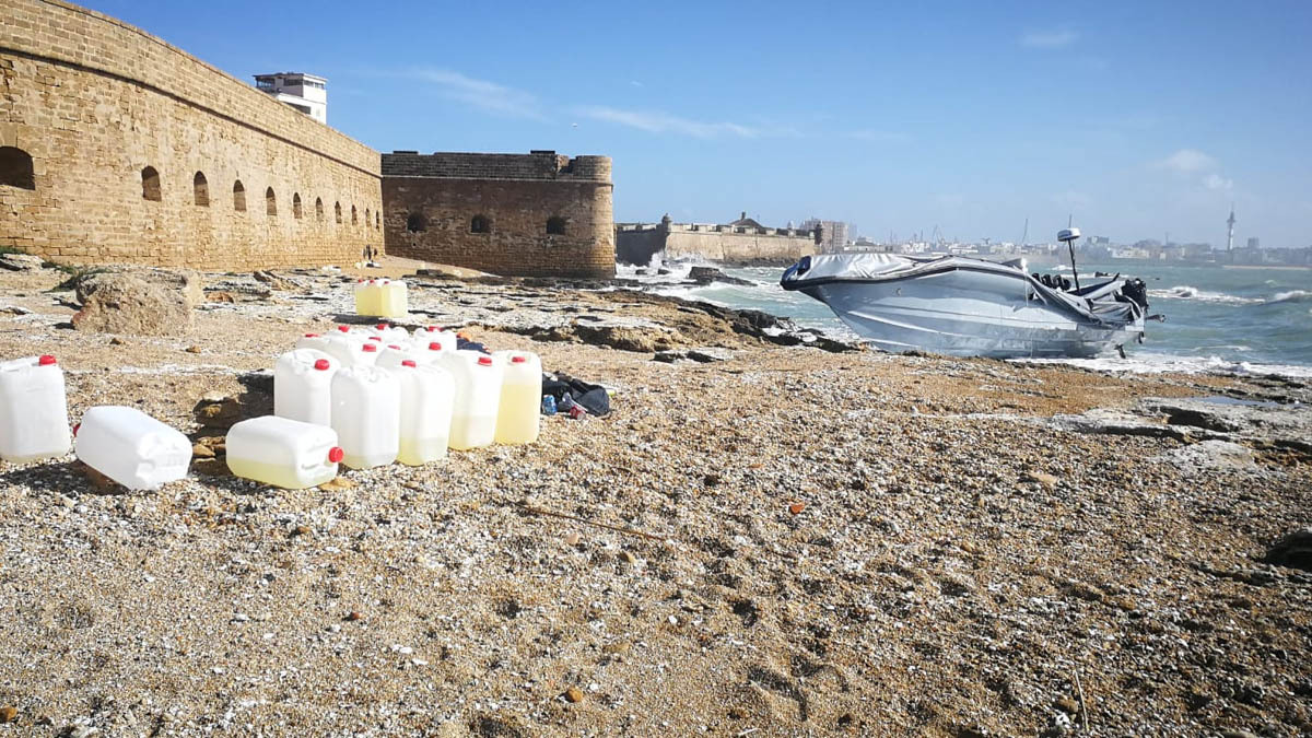 La capital de Cádiz no es lugar habitual de paso, pero el oleaje muchas veces hace cambiar de rumbo a los narcotraficantes. Como en este caso, en la mañana de este lunes que han aparecido dos narcolanchas encalladas; y multitud de bidones de combustible vacíos en la zona de la playa de la Caleta, en la capital gaditana. Esta situación ya se está investigando por parte de la Guardia Civil.