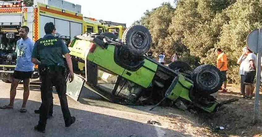 Se trata de un vehículo todoterreno que había volcado en la calzada cuyo copiloto se encontraba atrapado.
