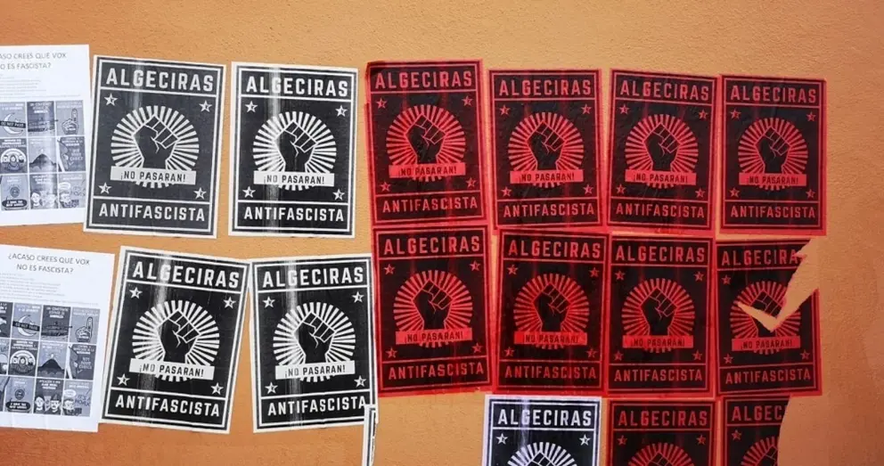 Además, también han encontrado las paredes del polideportivo con carteles pegado con el lema: "Algeciras antifascistas. ¡No pasarán!", así como otro que pregunta: "¿Acaso crees que Vox no es fascista?".