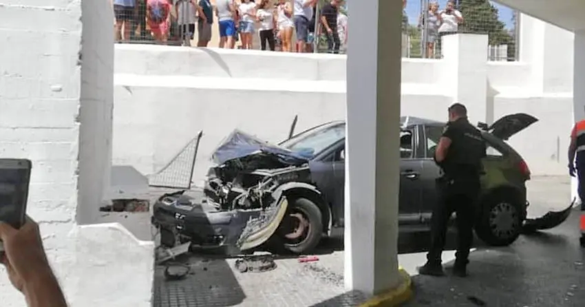 Un vehículo ha perdido el control mientras circulaba por la rotonda, dirigiéndose directo para el centro hospitalario, echando abajo el vallado que separa el acerado de el Hospital Santa María de El Puerto, cayendo varios metros, y acabando por estamparse contra la entrada del área de Urgencias.