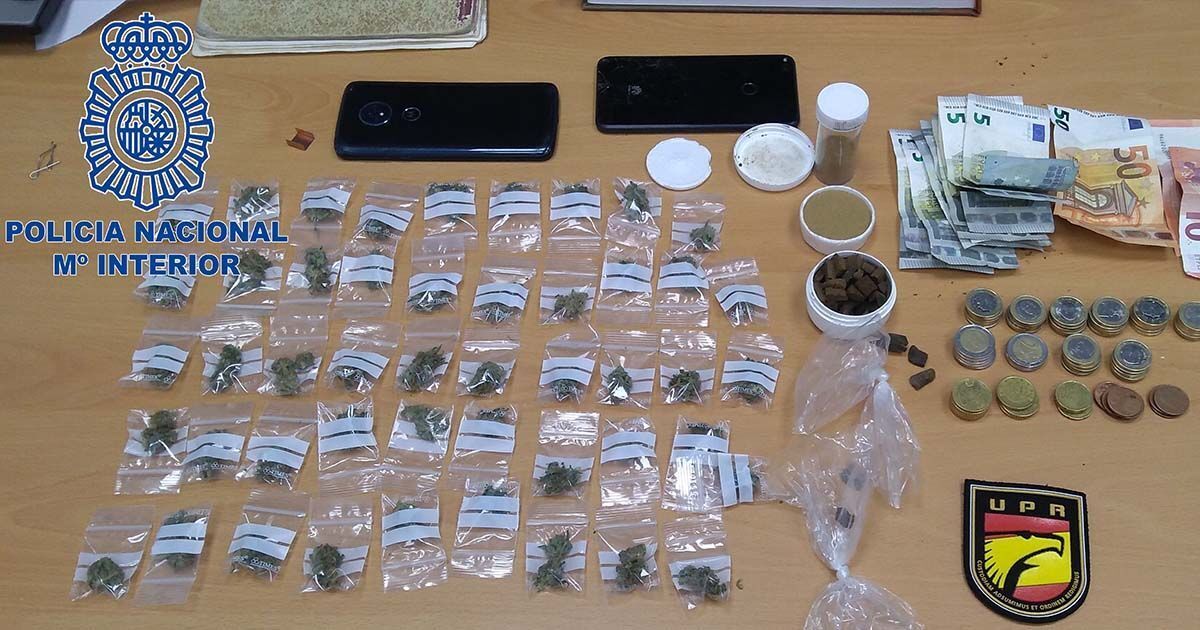 Una vez identificados e interpelados por lo sucedido, y ante la negativa para dar respuesta, los agentes les realizan un cacheo superficial. Fruto del mismo, pueden intervenirles 48 bolsas de marihuana, 57 posturas de hachís, teléfonos móviles y dinero en metálico, todo ello dispuesto para el menudeo.