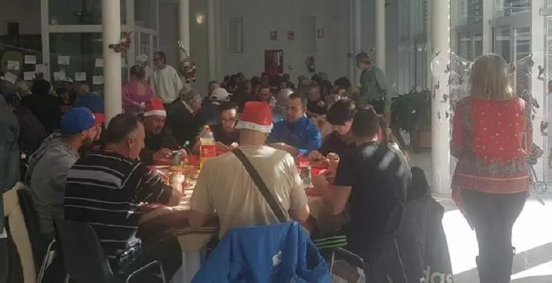 La Asociación Albergue Hogar Despertares ha celebrado este mediodía su tradicional comida de Navidad, en la que unas 80 personas sin hogar han disfrutado del almuerzo servido por esta entidad en un día tan señalado que, tradicionalmente, significa un momento de reunión familiar. En este caso, por desgracia, el vínculo de unión es la calle, por lo que una ocasión como esta sirve para estrechar lazos en un mundo tan complicado.
