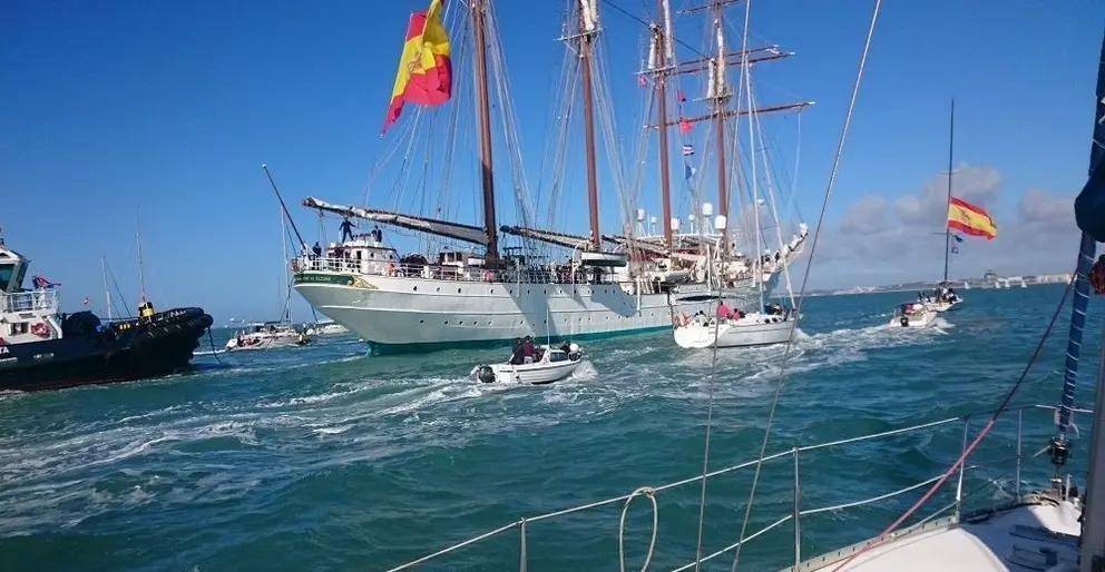Miles de personas despedían este domingo al buque escuela de la Armada española desde el puerto de Cádiz. El Juan Sebastián de Elcano ha zarpado a las 12 del mediodía, donde se encontraba desde el pasado miércoles día 30 de octubre.