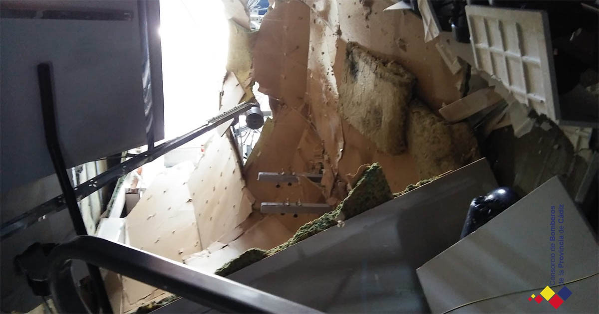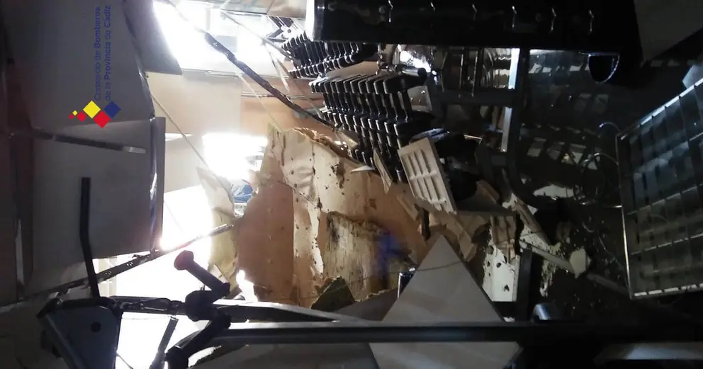 Bomberos del parque de Cádiz han intervenido a las 13 horas de la tarde del domingo en un centro deportivo ubicado en los bajos de un edificio de la Avenida Segunda Aguada tras desplomarse parte del falso techo.