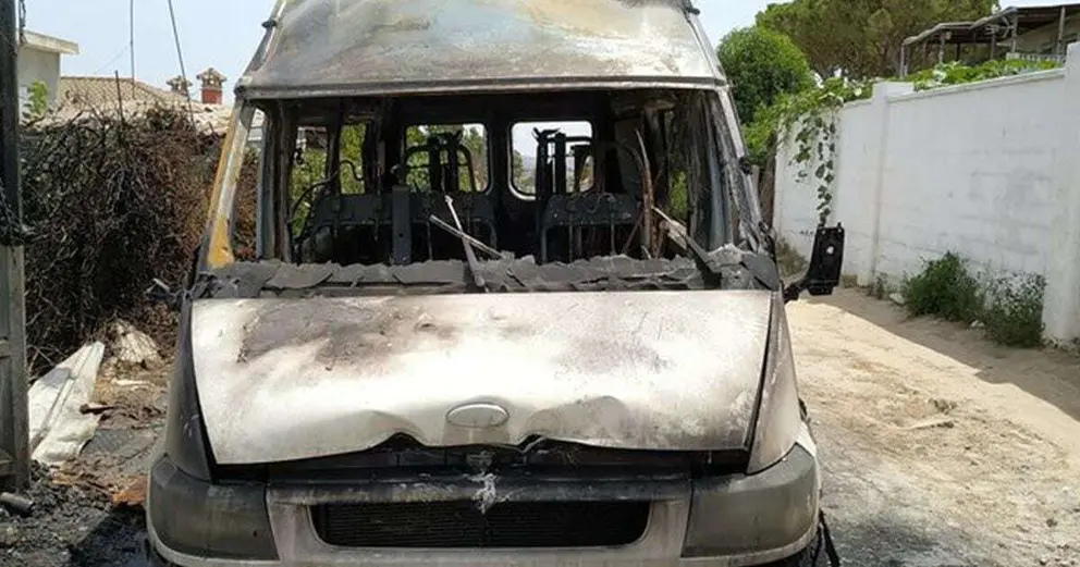 En llamas una furgoneta de personas con discapacidad en El Puerto