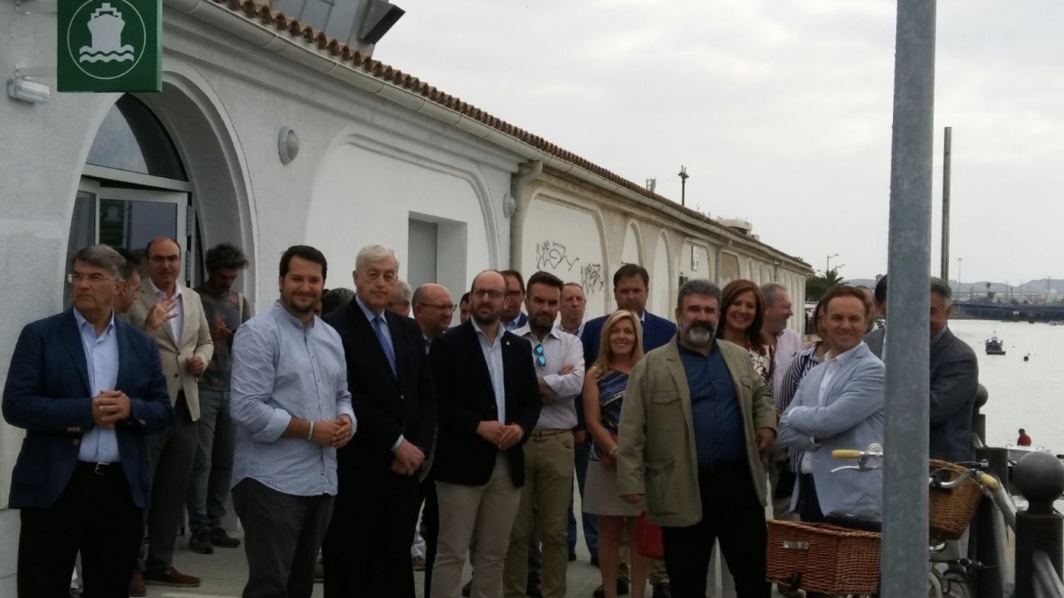 El alcalde de El Puerto de Santa María, David de la Encina, junto al director general de Movilidad de la Junta de Andalucía, Rafael Chacón, el delegado territorial de Fomento y Vivienda, Federico Fernández, y el presidente de Autoridad Portuaria, José Luís Blanco, el delegado municipal de Fomento, Antonio Fernández y miembros de la oposición municipal, han inaugurado hoy la nueva Terminal Marítima, una construcción en la que todos han coincidido en que es un ejemplo de cooperación institucional con la ciudad y el cumplimiento de una demanda portuense desde hace muchos años.