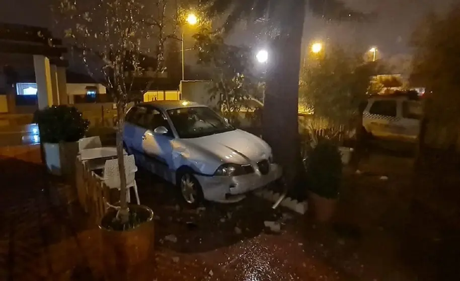 Invade la terraza de una pizzería tras salirse de la vía en Chiclana. Efectivos de la Policía Local de Chiclana han intervenido en dicho accidente; en el que se vio implicado un solo turismo y una sola persona; el conductor del coche.