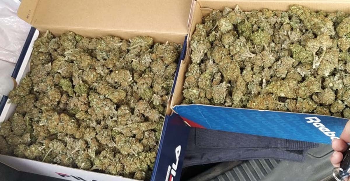 Sin capacidad de respuesta ante las preguntas de los agentes, éstos deciden proceder con un cacheo preventivo y a inspeccionar las cajas de zapatillas que portaba. De este modo, uno de los policías actuantes abrió las cajas de zapatillas, observando que en el interior de las mismas se encontraban numerosos cogollos de marihuana.