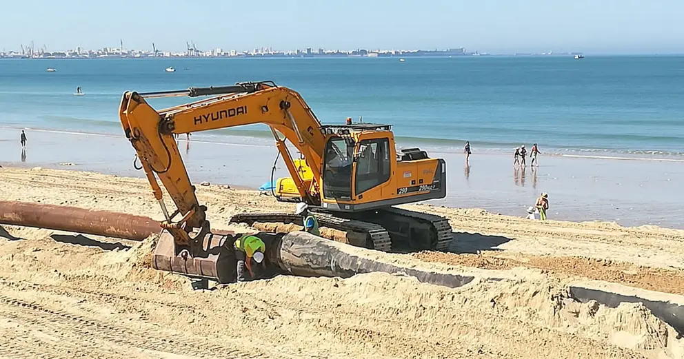 Desde tuberías de gran tamaño instaladas en la playa bombean la arena desde mar adentro con la draga. Los trabajos están siendo realizados por la empresa adjudicataria de las obras, Rohde Nielsen, con una inversión de más de seis millones de euros.