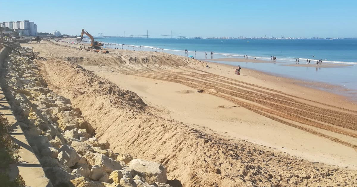 Los trabajos son correspondientes a las Obras de reparación por temporales del Plan Litoral 2018. Se ha procedido a aportar arena de procedencia marina a las playas de los términos municipales de El Puerto de Santa María, Sanlúcar, Chipiona y Rota.
