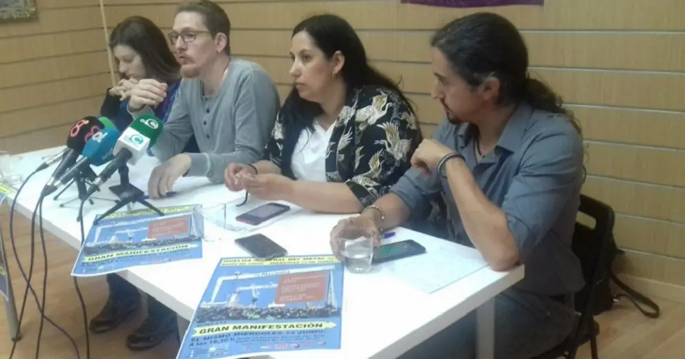 Los concejales de Podemos en los ayuntamientos de Cádiz, Ana Fernández, San Fernando, Ernesto Díaz, Chiclana, Daniel Martín y Puerto Real, Mayte Sánchez han manifestado el apoyo de la formación morada a la convocatoria de huelga en el sector del metal en la comarca de la Bahía de Cádiz. Fernández recordó que este paro se ha originado como consecuencia de la trágica muerte de dos trabajadores el pasado 18 de mayo, algo que calificó de "inadmisible":