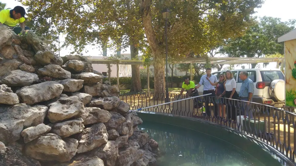 A fin de comprobar la marcha de los trabajos que se están llevando a cabo por parte de distintas áreas municipales, las tenientes de alcalde de Fiestas, Ana María Arias, y de Mantenimiento Urbano, Carmen Ojeda, han girado visita al parque esta misma mañana acompañadas por personal técnico; pudiendo corroborar de primera mano la puesta en funcionamiento de la fuente del parque, “que llevaba muchos años sin funcionar, y que ahora hemos conseguido por fin poner en marcha, tras los trabajos de limpieza y reparación que se han realizado por parte de Apemsa”.