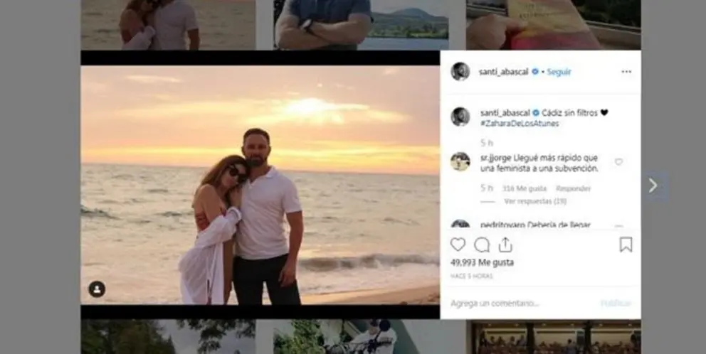 Y los políticos no iban a ser menos. De esta manera, el presidente de VOX, Santiago Abascal, ha sucumbido igualmente a los encantos de la costa de Cádiz y ha colgado una foto en Instagram donde se puede ver que el político se encuentra de vacaciones con su esposa Lidia Bedman.