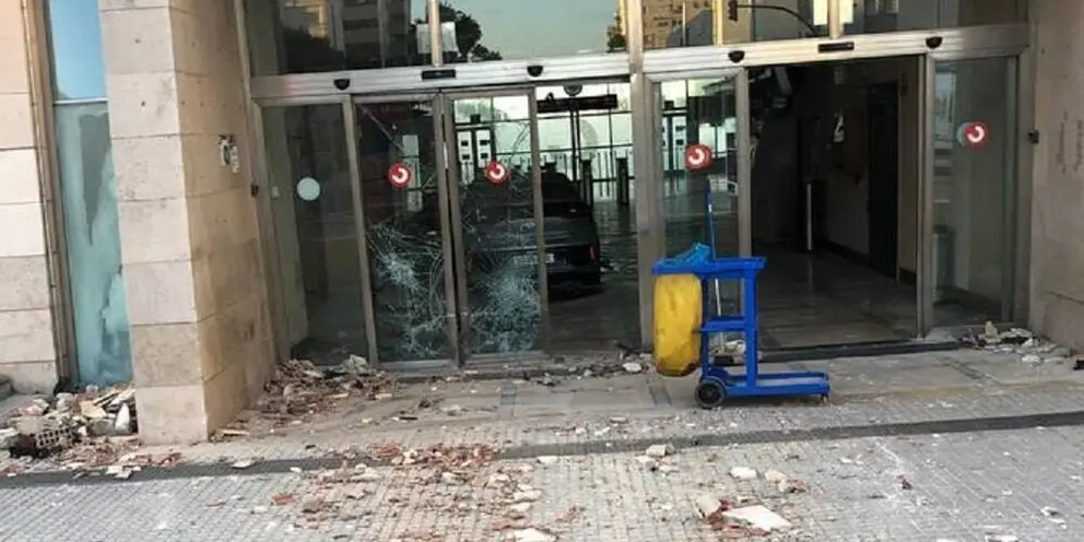 Afortunadamente, el brutal impacto se ha saldado sin heridas personales para el único ocupante, salvo el lógico revuelo provocado en la zona y los destrozos originados en la puerta y la barandilla de la estación.