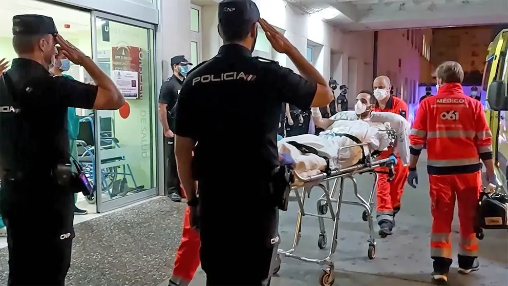El agente presentaba fracturas abiertas por el fuerte impacto en un brazo y parte de una pierna. Tras ser estabilizado en el hospital Punta de Europa de Algeciras, fue trasladado al hospital Puerta del Mar de Cádiz. Un fuerte operativo especial acompañó al vehículo sanitario.