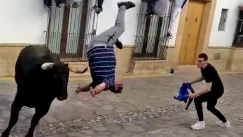 El herido se encontraba subido a una ventana de una de las casas cuando se resbaló y pisó el suelo justo al lado del toro, intentó huir a la carrera, momento en el que el morlaco aprovechó para embestirlo y lanzarlo por los aires.
