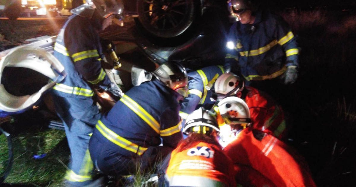 Según han informado los bomberos en una nota de prensa, al llegar al lugar de los hechos, rescataron a un varón de 21 años de un vehículo BMW volcado sobre el techo, por una salida de vía.