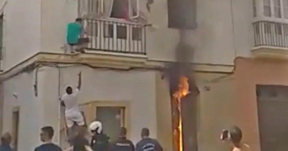 Vecinos del barrio han confirmado que se trata de una casa 'ocupa', por ello uno de los inquilinos del inmueble se ha tenido que ver obligado a escapar de las llamas por el balcón, creando una tensa situación entre los allí presentes.