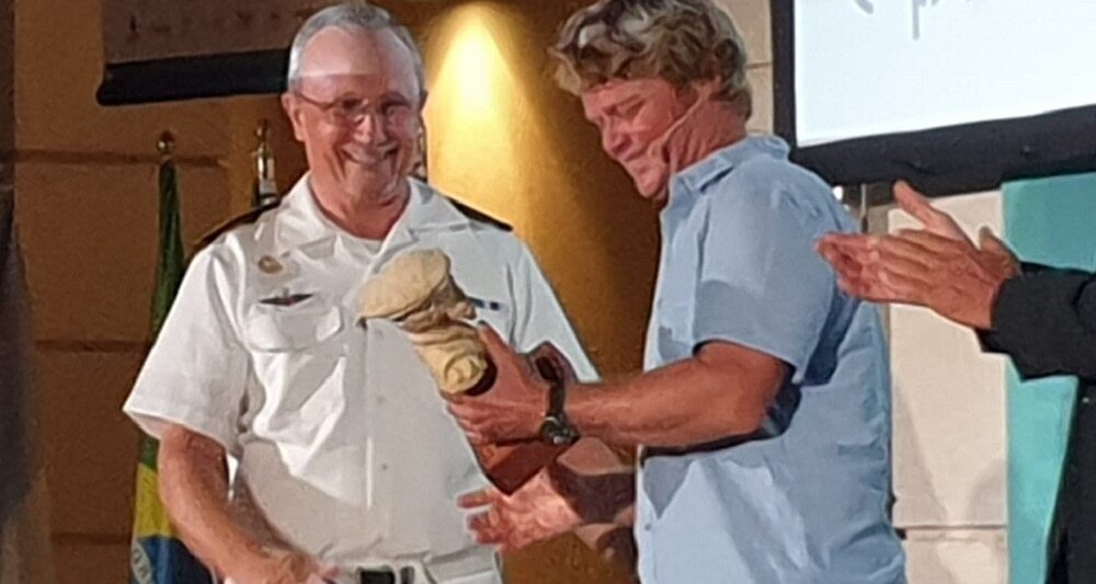 Alex Pella 'Le Diable Espagnol' es el mejor marino oceánico de nuestro país, y está considerado uno de los mejores del mundo, recibió el busto del marino de Getaria, de manos del vicealmirante de la Armada, Ignacio Horcada, secretario del Ministerio de Defensa para la conmemoración del V Centenario de la 1ª Vuelta al Mundo.