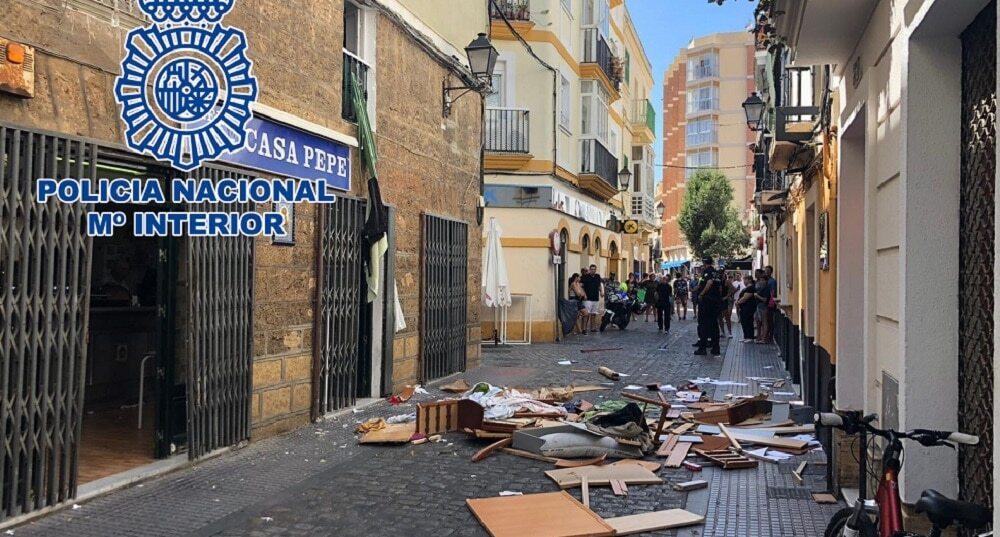 Agentes de la Policía Nacional han detenido en Cádiz a un hombre de 59 años de edad como presunto autor de los delitos de daños, amenazas graves y desordenes públicos. La detención se han realizado después de que el hombre lanzara desde su domicilio sito en los callejones de la Rosa todo el mobiliario y enseres, los cuales cayeron a la vía pública en la calle la Rosa y Pastora e impactando sobre una terraza de un negocio de hostelería.