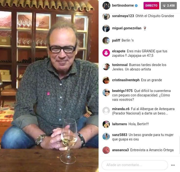 Para este sábado 18 Bertín Osborne, que aún no había probado la experiencia de esta convocatoria, anunció un directo a través de su Instagram para la una de la tarde. Para tomar “el aperitivo” juntos. Quizá pensara el cantante y presentador que la respuesta sería discreta. Pero enseguida se hizo la creciente concurrencia. La masiva presencia numerosísima…