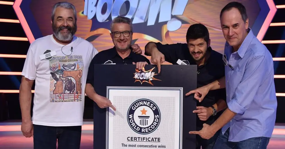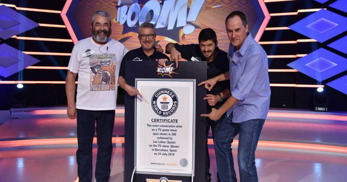La noticia sonríe por sí misma. El organismo internacional ha reconocido este pasado miércoles día 10 a los cuatro integrantes del equipo de ‘Los Lobos’ del programa de Antena 3 '¡Boom!' por batir un doble récord: el de permanencia en un concurso diario y el de más dinero acumulado en este tipo de programas. Lo que no es moco de pavo.