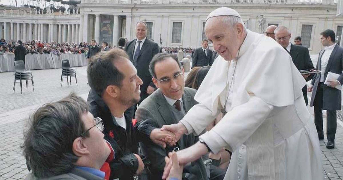Pablo Pineda y 'El Langui' tuvieron un encuentro con el Papa Francisco durante el programa 'Donde comen dos' | Foto de RTVE