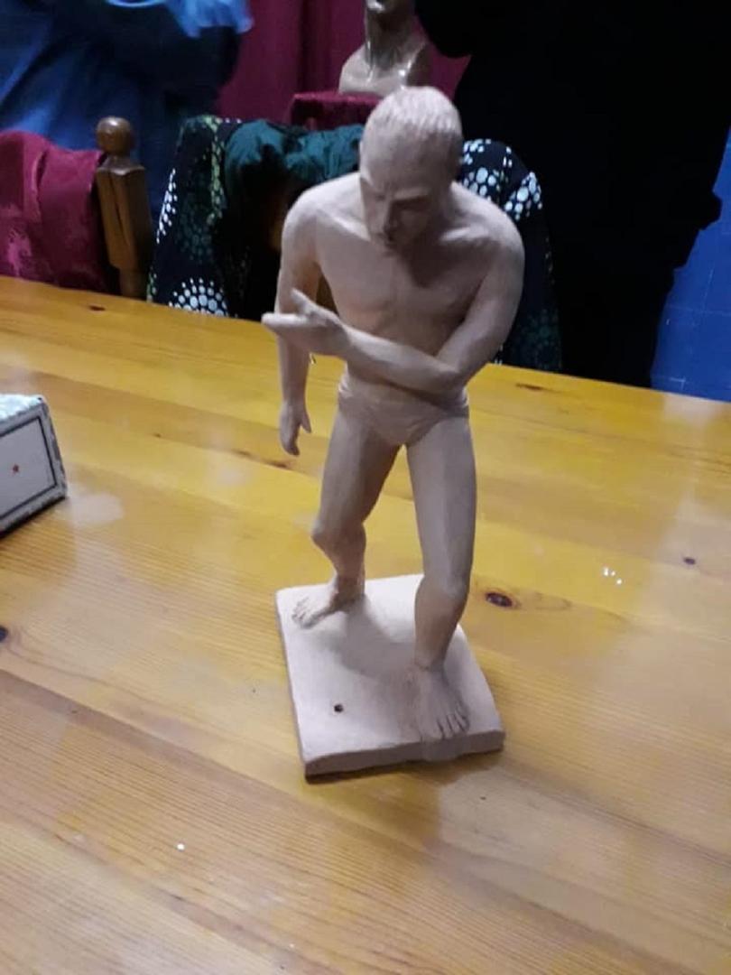Igualmente tendrá una postura inclinada hacia delante, dirigiéndose al esclavo, con la pierna izquierda avanzada dando una pequeña zancada y la pierna derecha un poco más retrasada.