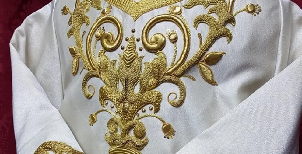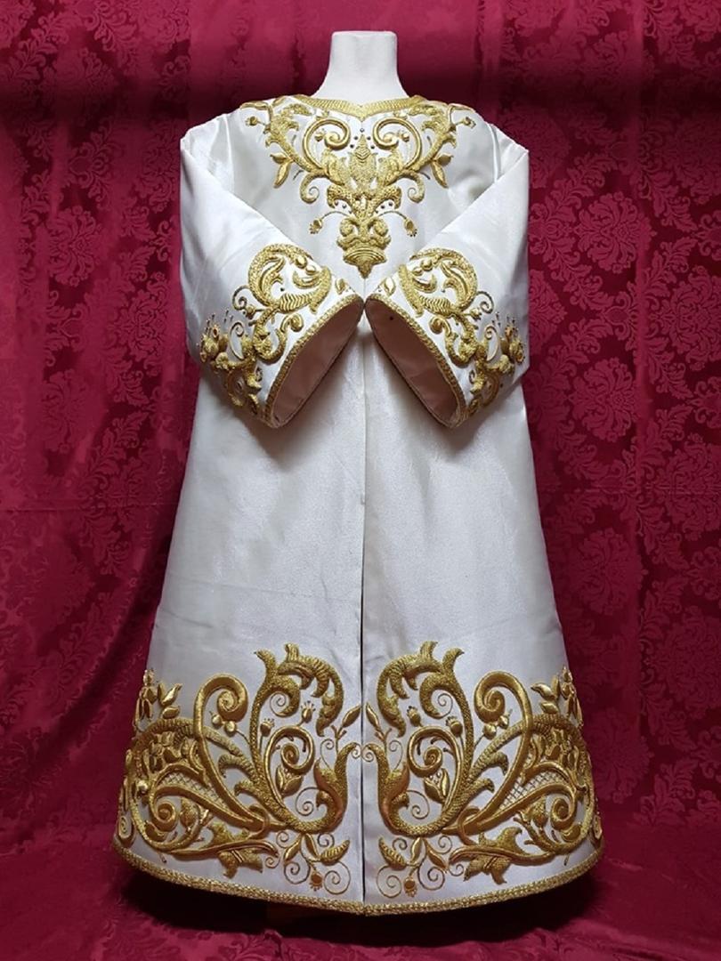 Por otra parte, recientemente se llevó a cabo la presentación y recepción de la túnica del Señor de la Paz. Los trabajos han consistido en restauración, enriquecimiento y confección de nuevas piezas en los bordados y el pasado de estos a tisú de plata, tela noble para que la luzca el Señor. También se ha procedido a redistribuir las piezas con la finalidad de que se aprecien más el cuello, el pecho, las mangas y la parte baja.