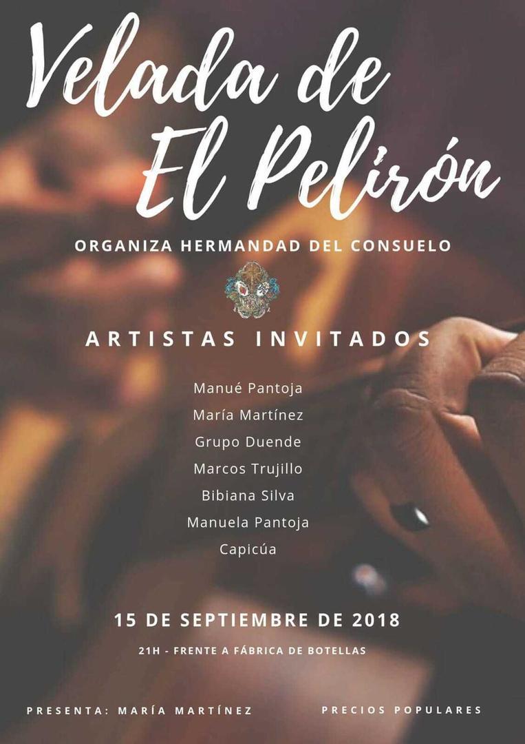 Además, en la jornada del sábado 15, tendrá lugar la "Velada del Pelirón", organizada por la propia Hermandad, contando con la actuación de los siguientes artistas: Manuel Pantoja, María Martínez, Grupo Duende, Marcos Trujillo, Bibiana Silva, Manuela Pantoja y Capicúa.