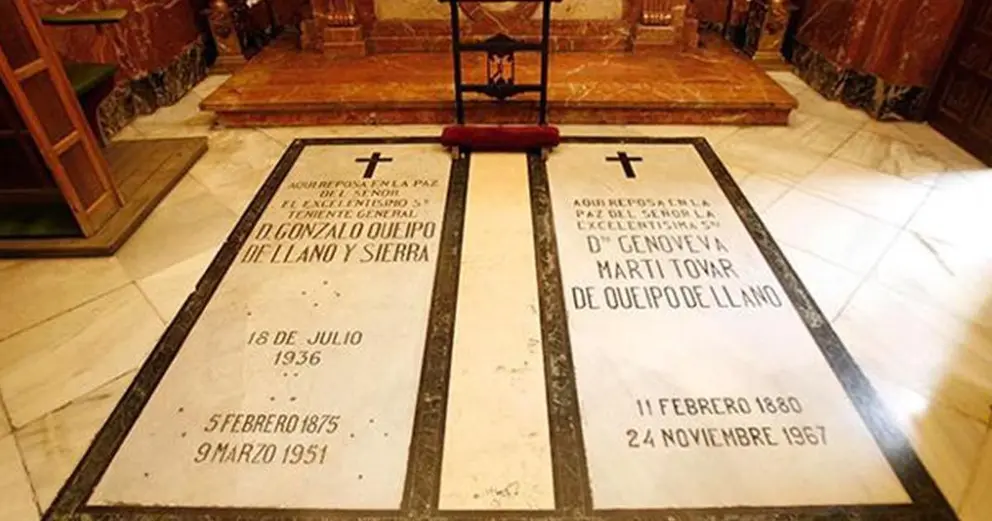 El golpista Gonzalo Queipo permanece enterrado en el interior de la basílica, algo que tras la exhumación de Franco ha generado un gran revuelo en la hermandad