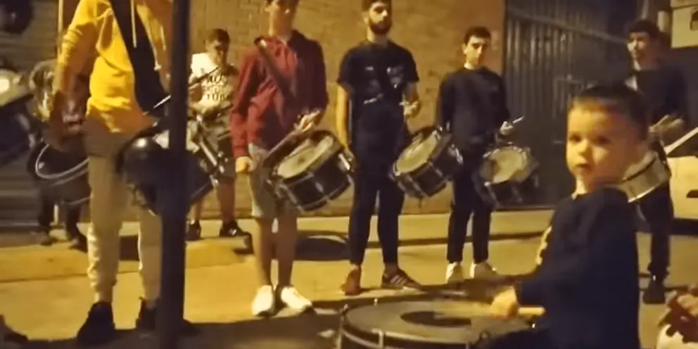 El pequeño de dos años aparece rufando en un ensayo con la Agrupación Musical de la Santa Cruz en Huelva. Para quién no conozca el significado de 'rufar', es como se conoce a quién marca el ritmo de la percusión en la banda. Una auténtica locura.