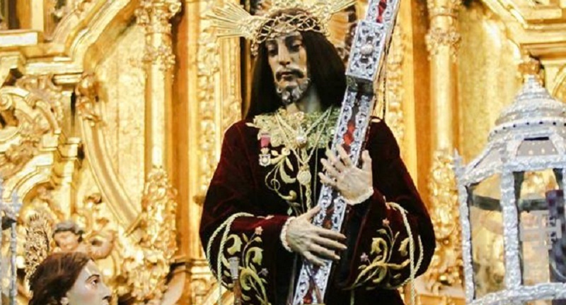 Nuestro Padre Jesús Nazareno con la túnica color guinda.