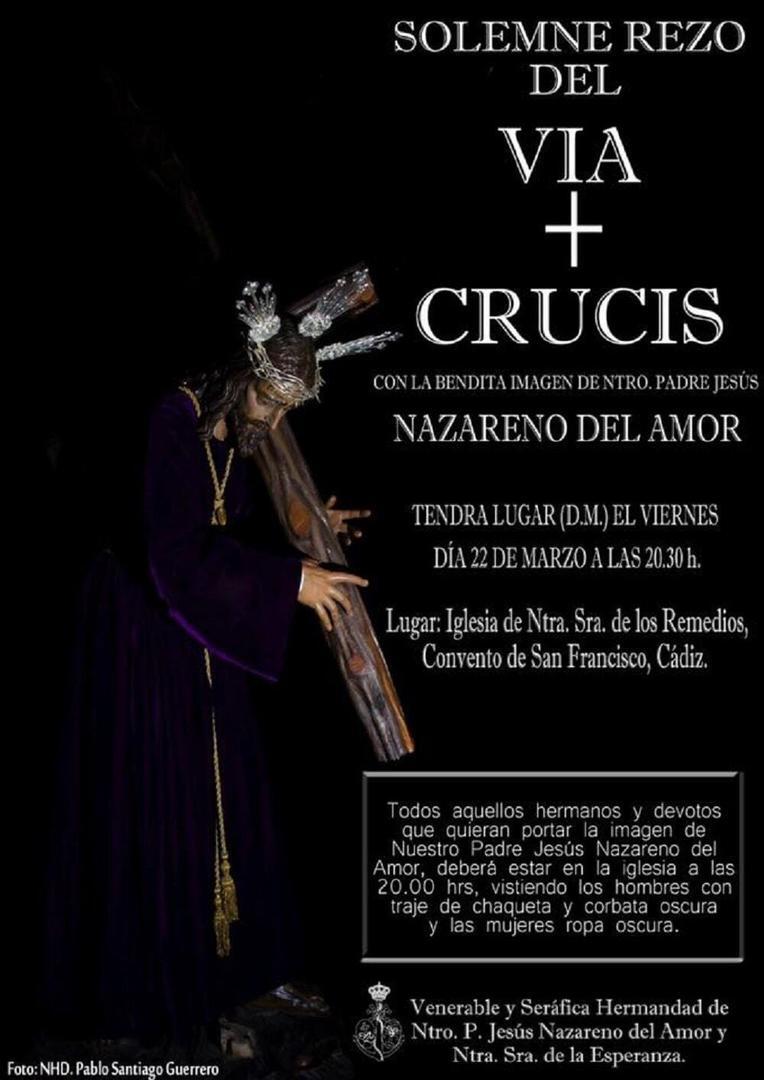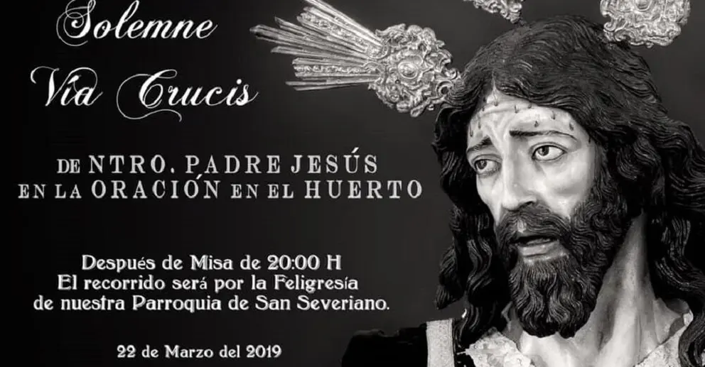 La Venerable Cofradía de Penitencia de Nuestro Padre Jesús de la Oración en el Huerto y Nuestra Señora de Gracia y Esperanza conjunta con la Parroquia de San Severiano celebrará el rezo del santo vía-crucis por las calles de la feligresía el próximo viernes 22 de marzo, con salida tras la santa de misa de 20 horas.