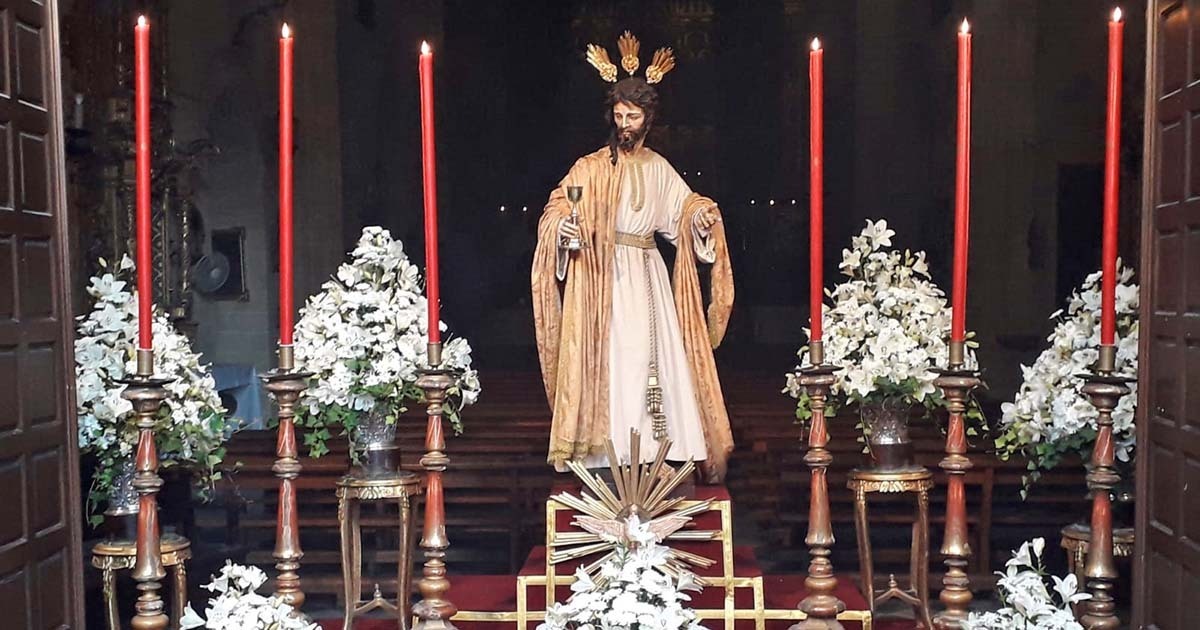 Reseñable altar montado, en la misma puerta de San Marcos, por los cofrades de la Cena con su Amantísimo Titular cubriendo todos los espacios. Jerez y la Virgen de la Merced, un año más, se fundieron en un rezo de amor.
