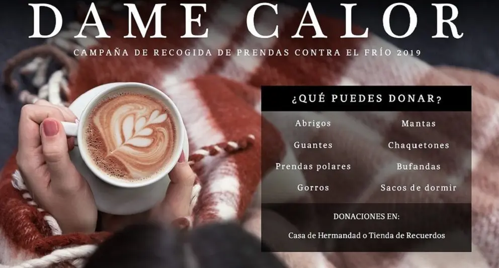 Bajo el lema 'Dame calor', la corporación del Regidor Perpetuo de Cádiz solicita prendas contra el frío para posteriormente ser donadas: Abrigos, guantes, prendas polares, gorros, mantas, chaquetones, bufandas o sacos de dormir, entre otras.