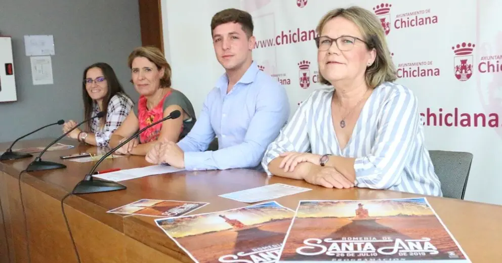 La delegada municipal de Participación Ciudadana, Mª Ángeles Martínez Rico, el delegado municipal de Fiestas, José Alberto Cruz; la presidenta de la Asociación de Vecinos Ermita de Santa Ana, Manuela Sánchez; y la representante de la Comisión de Santa Ana, Esther Gallardo, han presentado los actos que se celebrarán este año en honor a Santa Ana. Así pues, desde hoy, 19 de julio, comienzan a celebrarse las distintas actividades que desde la AVV Ermita de Santa Ana tienen previsto con motivo de esta festividad. Así, esta tarde, desde las seis de la tarde, el torneo de fútbol sala se celebra en el polideportivo municipal de Santa Ana, mientras que mañana sábado habrá una jornada de convivencia en la sede de la asociación, con degustación de paella.