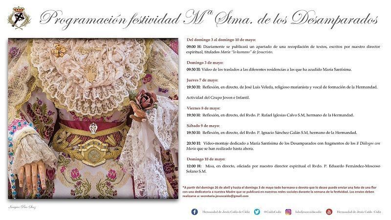 Al igual que ocurriera con la pasada Semana Santa, la corporación penitencial del Martes Santo gaditano anuncia una intensa programación virtual a través de las redes sociales para mantener viva la llama de la fe entre sus hermanos.