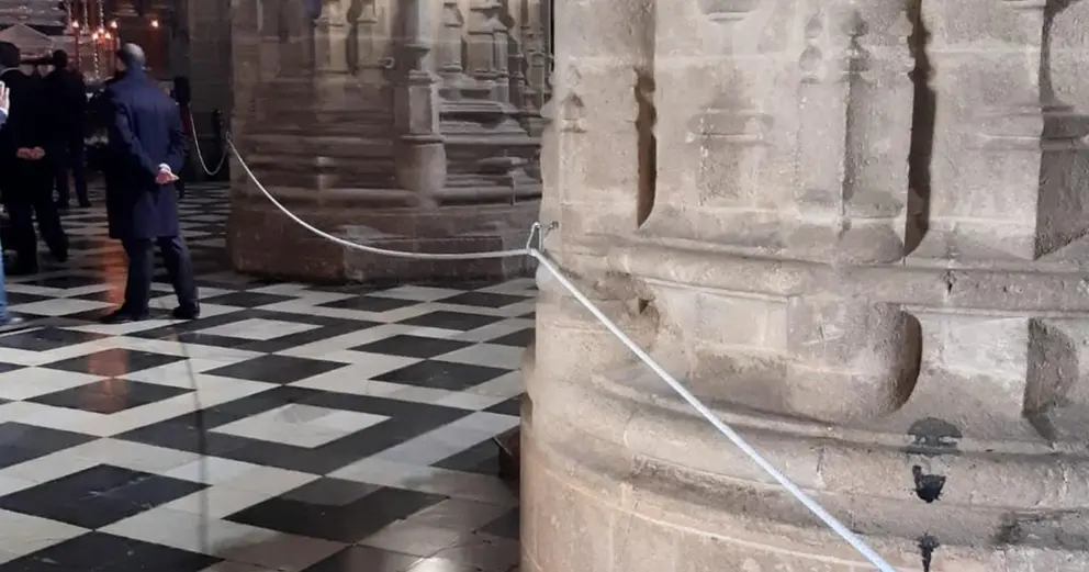 Las columnas, que tienen un valor incalculable, habían sido modificadas con un cáncamo, que incrustado en la piedra y sujetando a una cuerda, servía para que la gente no pudiera moverse con libertad por todas las zonas de la capilla.