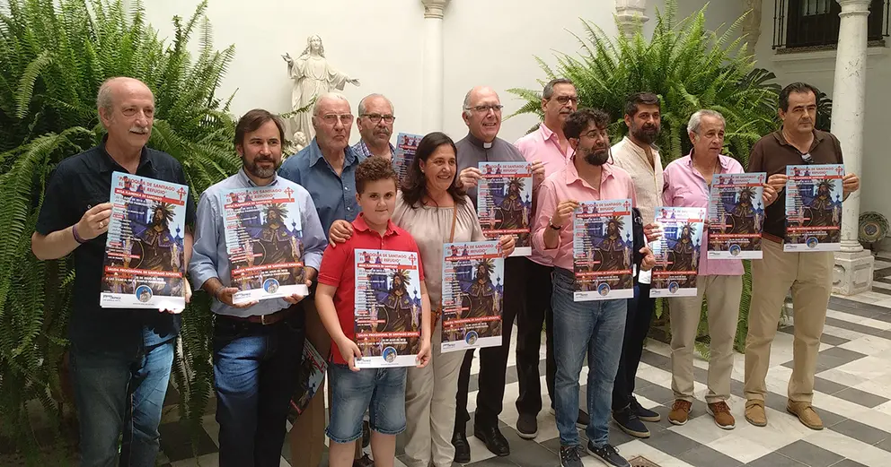 La presentación de la misa y la procesión ha tenido lugar en el Auditorio San Juan Pablo II, en el Obispado, presidida por el párroco de Santiago, el sacerdote Diego Moreno, acompañado por Luis y Nono de Perikín así como del presidente de la asociación 'Jerez por Santiago', Miguel Ángel López Barba, quien ha adelantado que esta entidad evoluciona y, previo cambio estatutario y una vez reabierto al culto el templo, ayudarán a la revitalización del Barrio de Santiago.