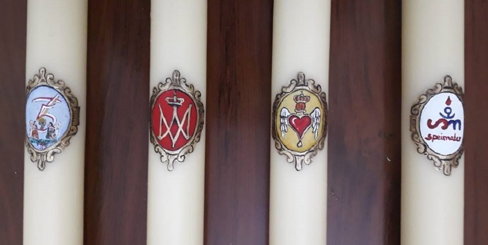 - El corazón alado con la leyenda 'Amparo de la fe. Con este cirio ponemos a las plantas de la Virgen todos los dolores de la Iglesia. Especiamente rezaremos por la situación de los cristianos perseguidos a causa de profesar su fe Intención del Papa Francisco que pide a la toda la Iglesia que les mantengamos siempre presente en nuestras oraciones. Son los mártires de la fe en el mundo actual.
