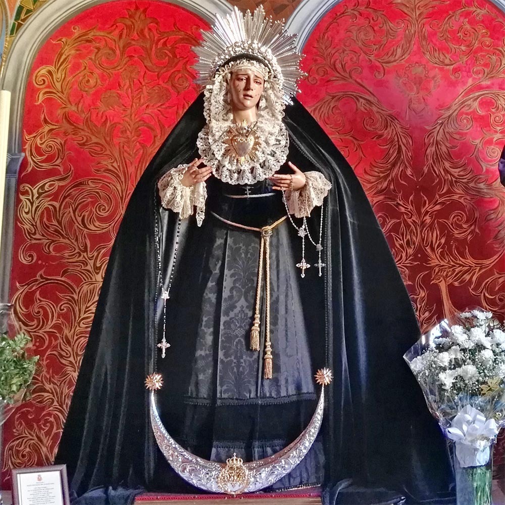 Las Vírgenes -las Dolorosas, las Sagradas Titulares- de las Hermandades coinciden estos días en los templos vestidas por entero de negro. De riguroso luto. ¿Qué entendemos por luto? Llanamente la expresión medianamente formalizada de responder a la muerte, esto es: la muestra externa de los sentimientos de pena y duelo ante el fallecimiento de un ser querido.
