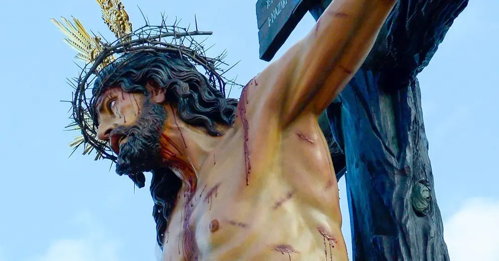Cuando el reloj marca las seis menos cuartos de la tarde, la cofradía de Puertas del Sur del Santísimo Cristo de la Sed pone rumbo hacia la majestuosa Iglesia de San Miguel.