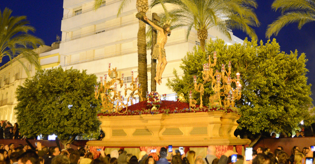 Un cortejo joven, con ojos que marcan un Lunes Santo y un sabor agridulce de despedida de una banda de cornetas y tambores. Los nazarenos revestidos de túnica nazarena, inspirada en la de Teresa de Calcuta, caminan con paso largo como la zancada del Cristo de la Sed subiendo la Cuesta de la Alcubilla a los sones marineros del Rosario de Cádiz.